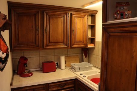- kleine Küche mit Herd, Mikrowelle und Minibackofen
